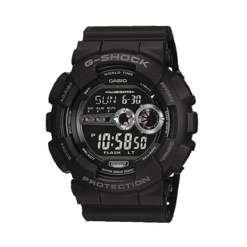 CAJA DE PLÁSTICO COLOR NEGRO CON BISEL PLATEADO Y DETALLE COLOR ROJO, CORREA DE SILICONA NEGRA, ESFERA DIGITAL, SUMERGIBLE 100M.