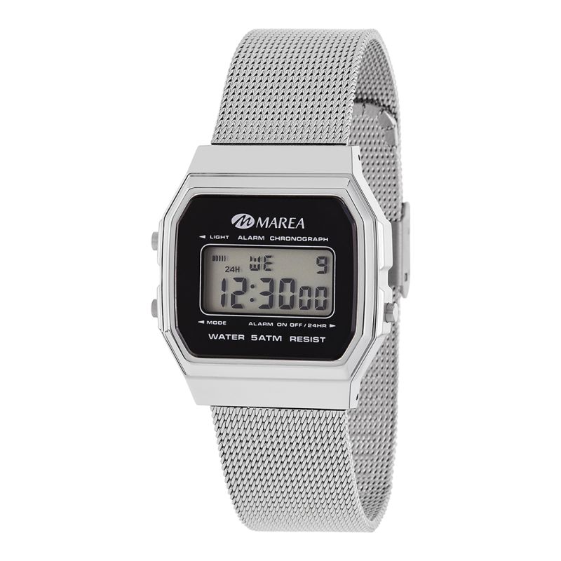 CAJA DE ACERO, BRAZALETE DE MALLA DE ESTERILLA DE ACERO, CIERRE DE CORREDERA. ESFERA TURQUESA, ALARMA, CALENDARIO, CRONÓMETRO, LUZ LED, PANTALLA DIGITAL...