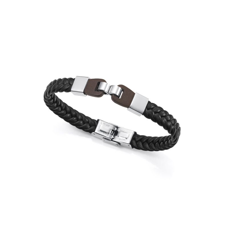 PULSERA VICEROY ACERO Y PIEL NEGRA CAB